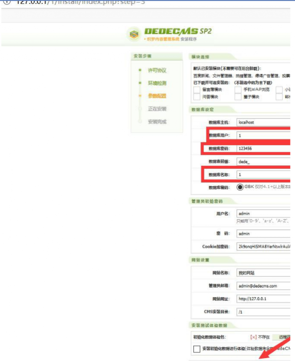 12、数据库名称,为了方便我们自己识别,就和我们dedecms的子目录一样,设置为1,下面的字符集,大家一定要注意这个dedecms,是gbk编码的,这个地方一定要选gbk.