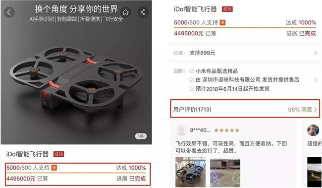 独立创业后,我应该策划主导了至少 2 次爆款产品,一次服务逗映无人机做文案和社群营销,3 天卖出了 5000 台无人机,把小米有品的小程序都搞出 BUG 了,一举让这款无人机在行业内打出了声量,当然我认为更重要的是帮助它把供应链都盘活起来了。