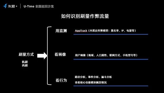 首先要用数据监测,像AppTrack有内置反作弊模型,有黑名单,通过IP位置和电量的实时变化。