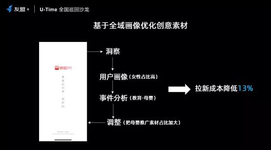 他们发现有大量的用户是女性,而大部分关注母婴和教育频道,也就是母婴群体。他们调整策略,把母婴推广加大了,拉新成本降低了13%。