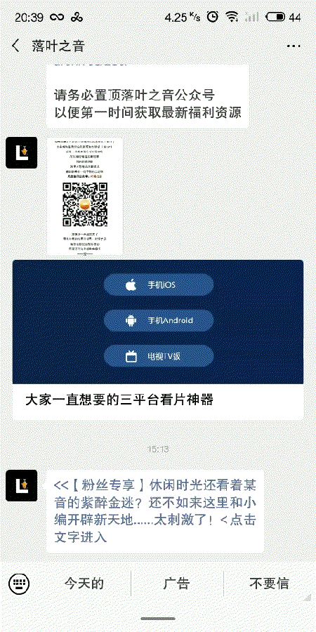 同样的骗局,公众号“落叶之音”也中招了。