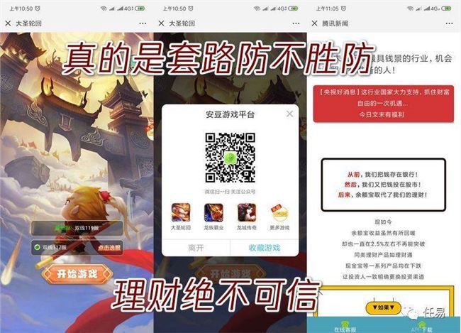 一边把自己上当受骗的血泪教训写下,在次日推文中分享给大家——《受骗记:别信高额理财 套路防不胜防》,并提醒粉丝:请大家千万不要点击或相信我昨天发的游戏链接!