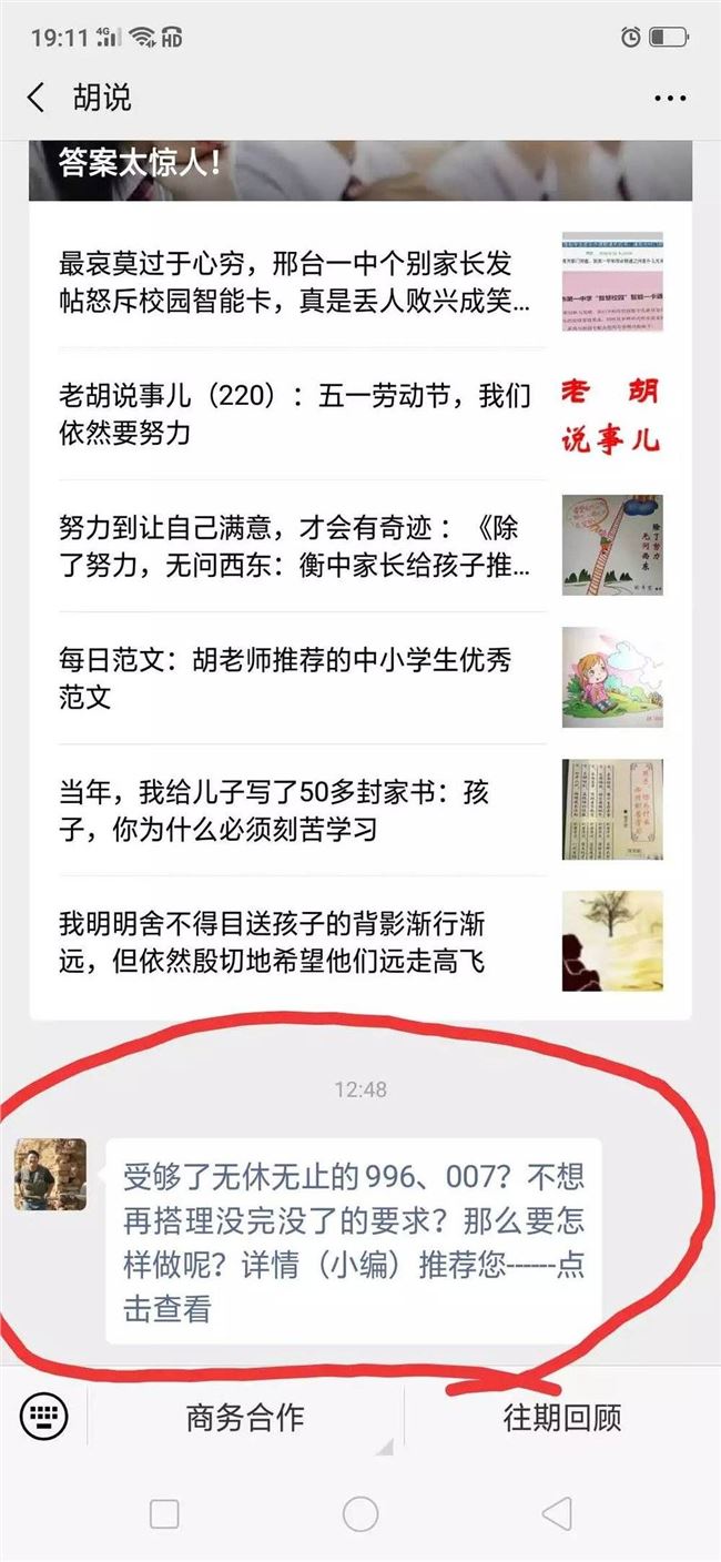 当天文字链接群发后,很快,老胡在广州旅游的儿子给他发来截图,问为什么发这种东西……后来,老胡才意识到自己被广告媒介忽悠了,赶紧删文,可惜已经来不及了。
