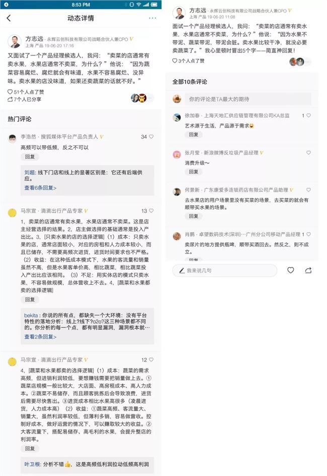 看到个网友转发了个图,问题是:卖菜的店通常有卖水果,水果店通常不卖菜,为什么?面试者的回答被打码了,这真是吊胃口啊。于是这个问题引起了我的思考。
