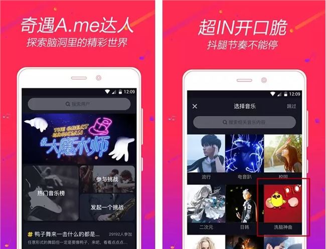 我们从 16 年底的抖音开始说起。16 年 9 月 26 日,抖音的前身——A.me - 音乐短视频社区诞生了,看得出来,那个时候的它就有了「洗脑神曲」的栏目。