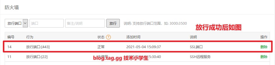 前言:在实际生产环境中,比如我们用到了不常用的端口,那么需要先在防火墙中放行该端口才可以正常使用,比如宝塔面板,可以很方便的在后台直接放行,而无需亲自操作防火墙,本教程以443端口为例,若您的是其他端口,请将443修改为自己的端口即可