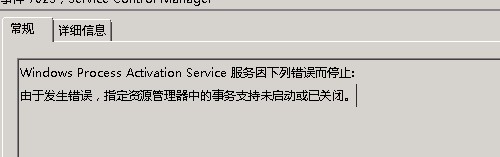 于是在服务中查看Windows Process Activation Service服务是禁止状态,改为自启并启动后在启动iis即可正常。