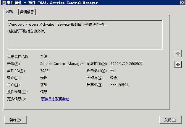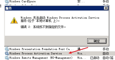Windows Process Activation Service 服务因下列错误而停止:系统找不到指定的文件。