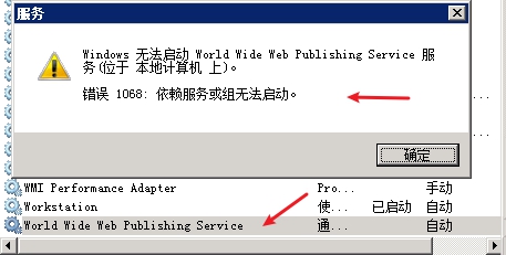 现象:IIS无法启动,尝试启动iis,提示: 除非 Windows Activation Service (WAS)和万维网发布服务(W3SVC)均处于运行状态,否则无法启动网站。目前,这两项服务均处于停止状态 ,检查www服务和Windows Activation Service 未启动,尝试启动www服务,提示依赖服务未启动,尝试启动Windows Activation Service启动提示找不到指定文件,通过系统日志看有如下报错