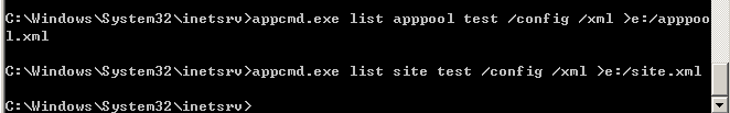 XXX为站点名或者应用池名。如果XXX不填写,会把所有的站点或应用池全部导出来。