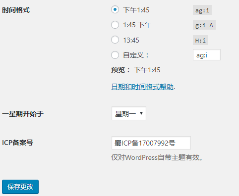 wordpress后台自带备案号设置